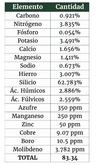 Ponemos a su disposición mezclas a la medida de un complejo mineral nutritivo, compuesto por Diatomita, Zeolita, Leonardita y otros minerales. Al estar combinados, proveen una amplia gama de elementos esenciales, así como una fuente de ácidos húmicos y fúlvicos, siendo ideales para todo tipo de cultivos.